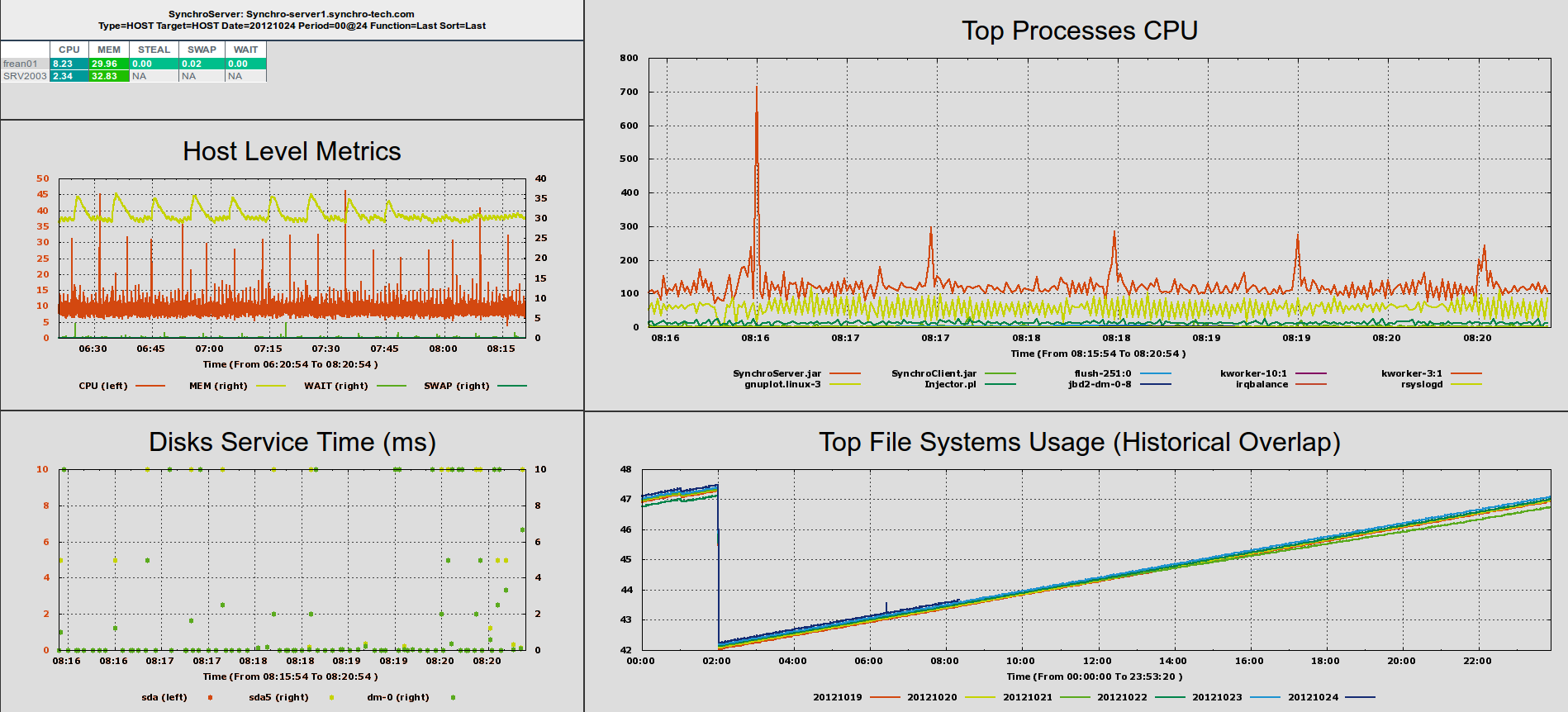Below is a live Synchro dashboard called “View” that describes some of the basic functionalities of Synchro. Users can define as many Views as needed. Each View can include any number of Result Windows presenting statistics in diverse Formats.